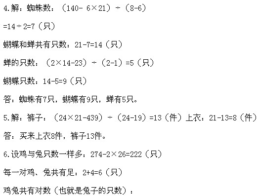 三年級奧數下冊:第十一講 雞兔同籠問題習題解答
