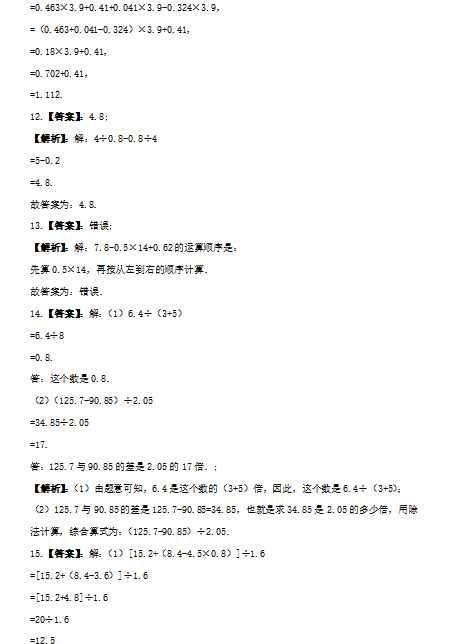 2021-2022學年冀教版五年級上冊數學第三單元測試卷五答案(圖片版)(3)